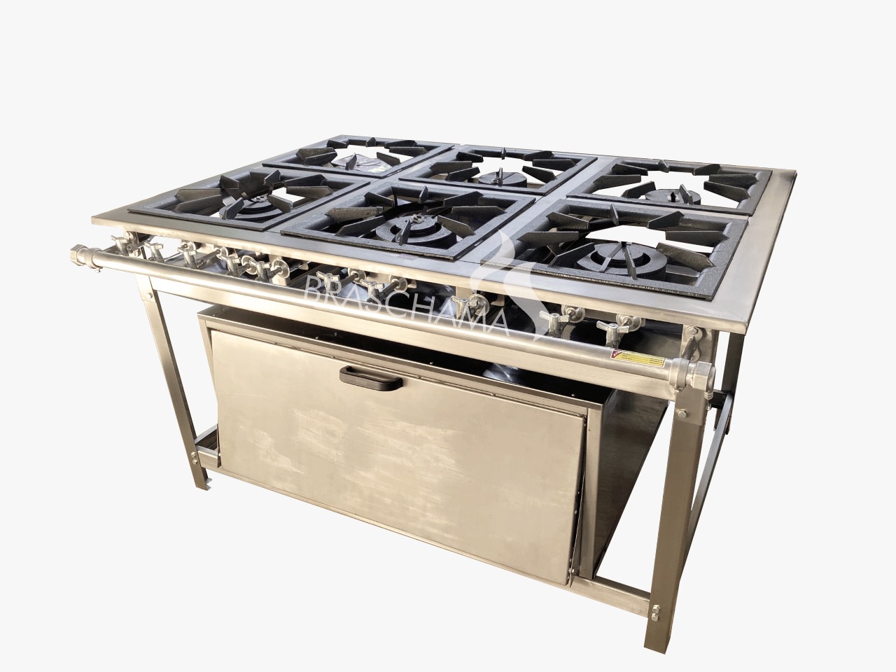 Fogão Braschama Dual Chef 30×30 com 6 Bocas (3 simples + 3 duplos), Perfil 6,5 cm, com Forno Grande reforçado é um equipamento premium para cozinhas industriais ou com alta demanda. O modelo “Dual Chef” traz reforços estruturais que permitem uso intenso, associado a um forno amplo que oferece versatilidade no preparo de grandes volumes, assados e gratinados.