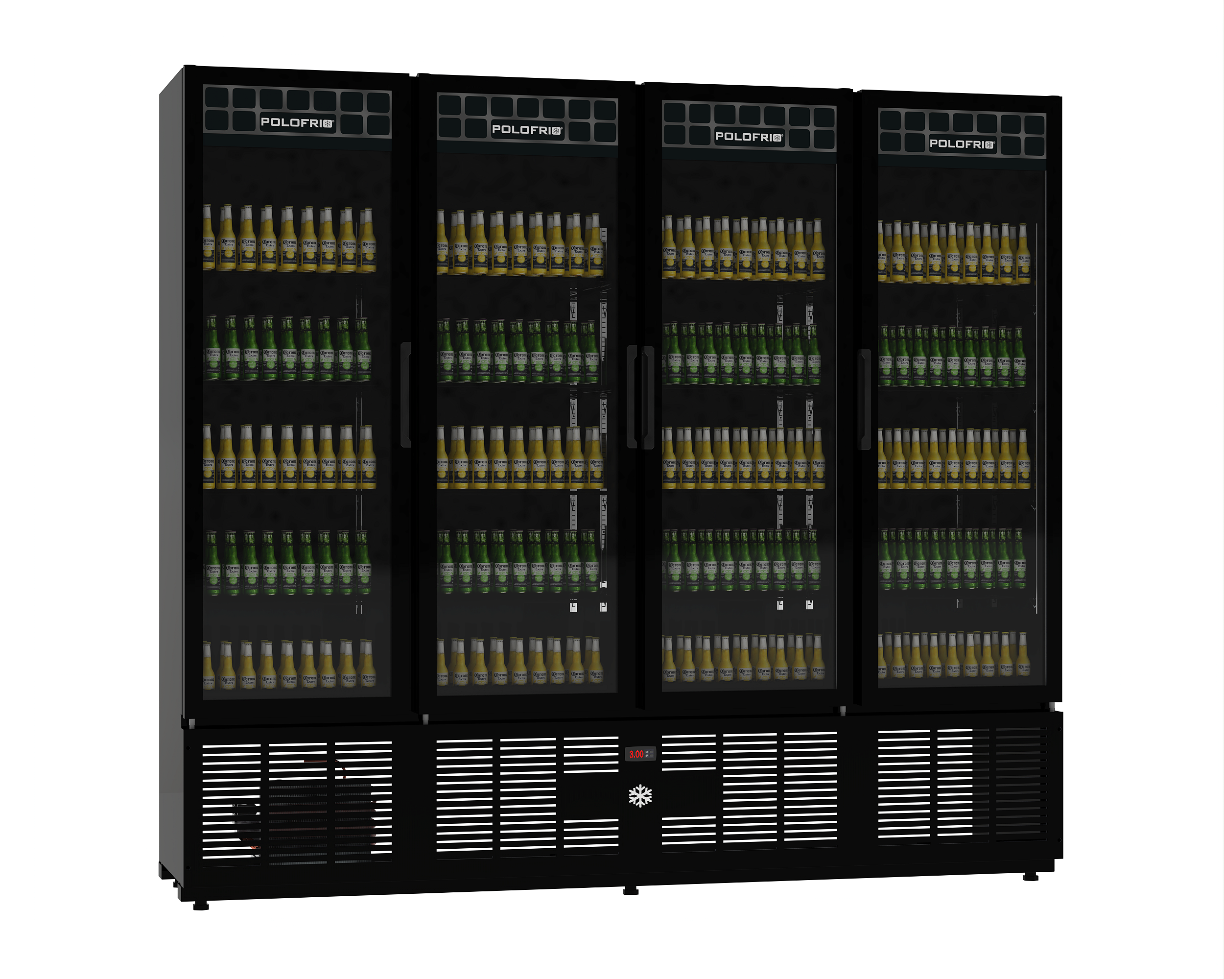 • Portas em vidro duplo baixo emissivo com fechamento automático por barra de torção
